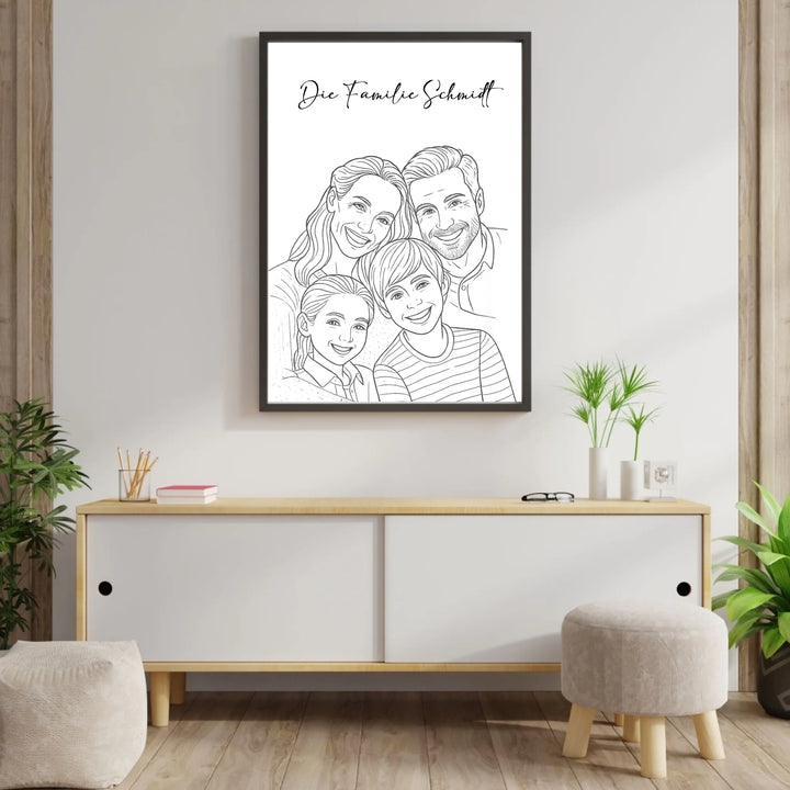 Familie Drawing Portrait - AI Poster - Personalisiertes Poster